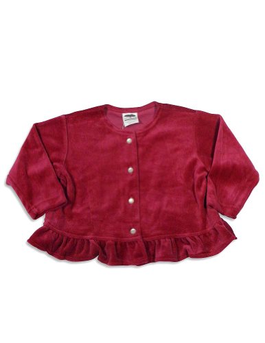 Mulberribush - Toddler Girls Long Sleeve Velour Cardigan, Raspberry, Pearl Button Down Front, Ruffle Waist Hem, 75% Cotton 25% Polyester, Made In USA, #26249 Read more...